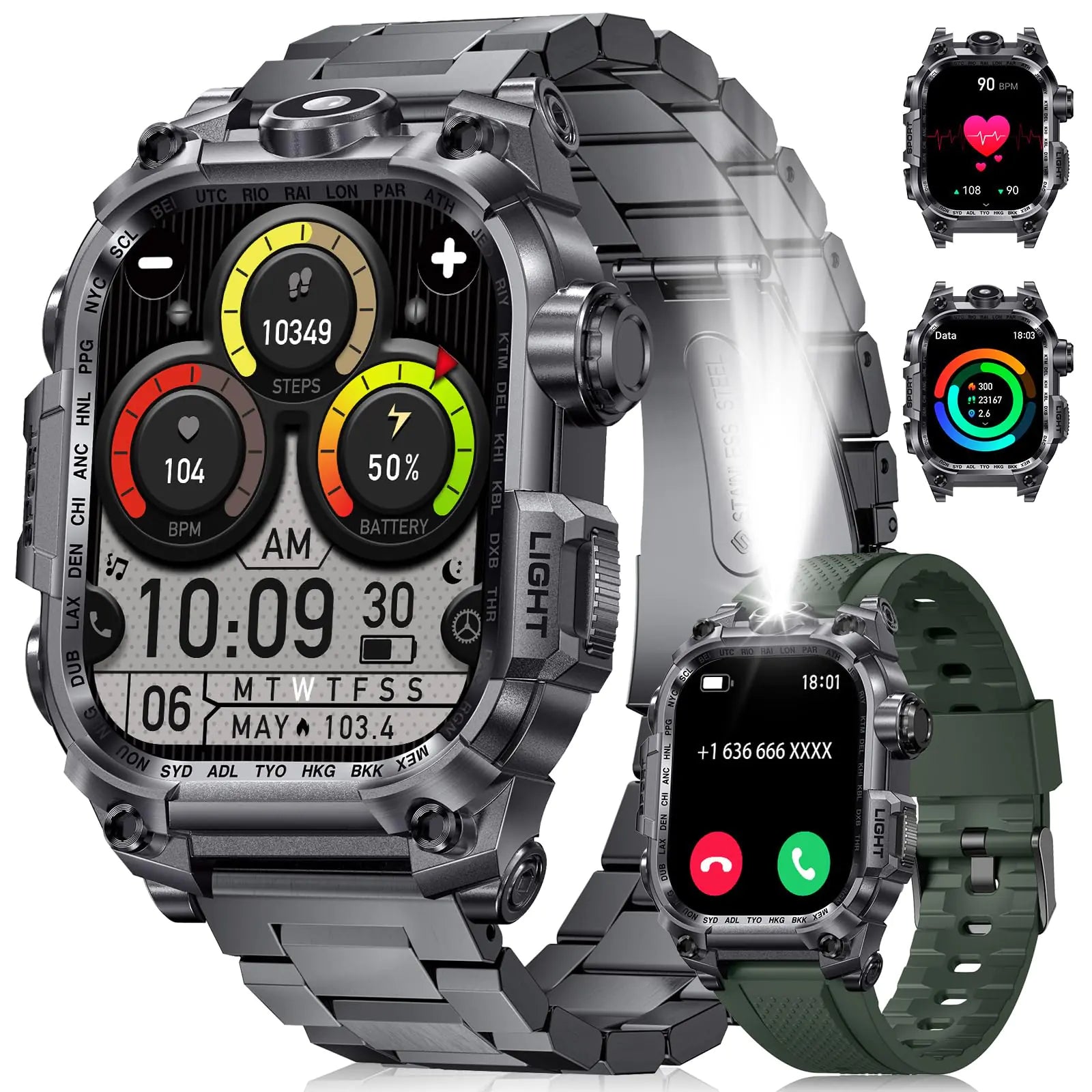 LIGE Military Smart Watch for Men(LED Flashlight)
